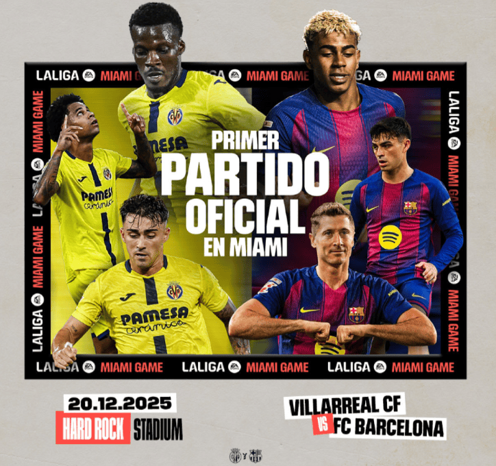 西甲官方宣布比利亚雷亚尔主场与巴萨的西甲联赛,将会在12月20日于迈阿密举行,预计两支球队将会因为这场比赛,各自收获500-600万欧元的收入。